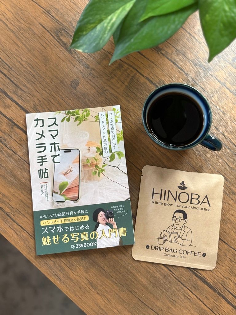 読書体験ブランドHINOBAのドリップバッグコーヒー(事前配送)と、あなたが持参したお気に入りの本を被写体に、その場で撮影実践。講師が各テーブルを巡回してアドバイスします。