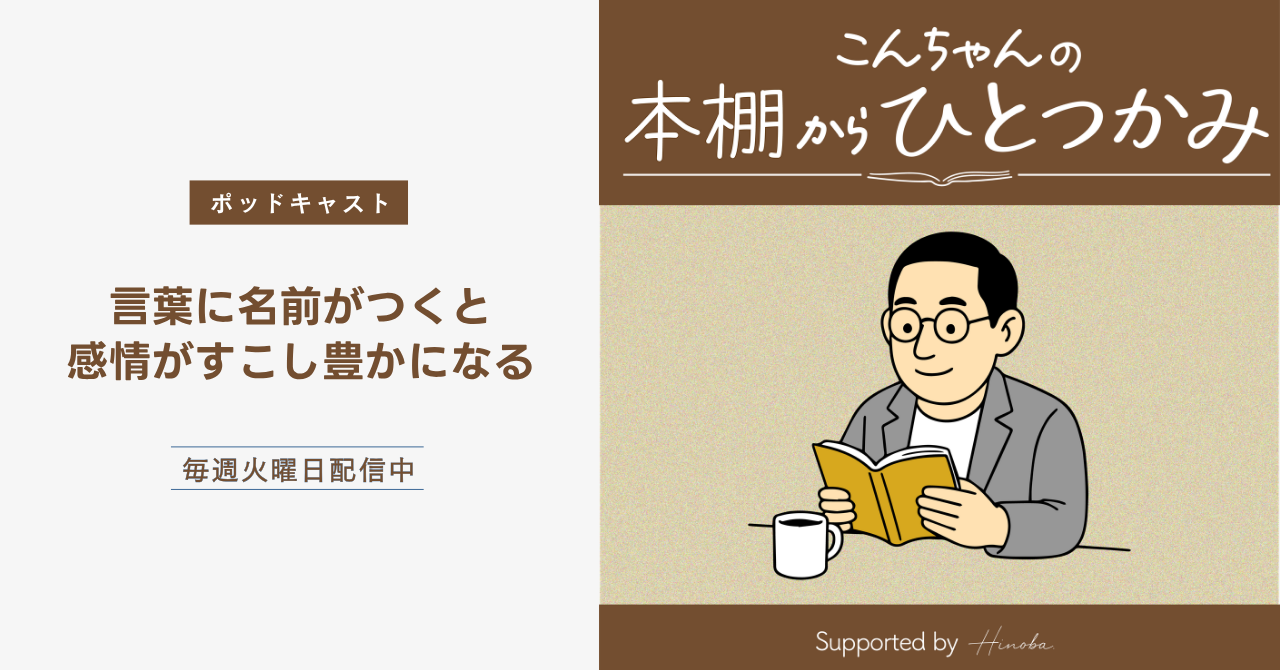 339PLANNINGのこんちゃんが配信するポッドキャスト「こんちゃんの本棚からひとつかみ」第7回では、その違いを実感できる一冊として『言の葉連想辞典』を紹介しています。